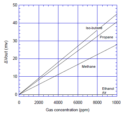 四、催化燃燒式可燃氣體傳感器TGS6810靈敏度特性: