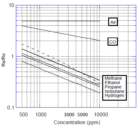 Ro = 傳感器在1000ppm 甲烷中的傳感器電阻值