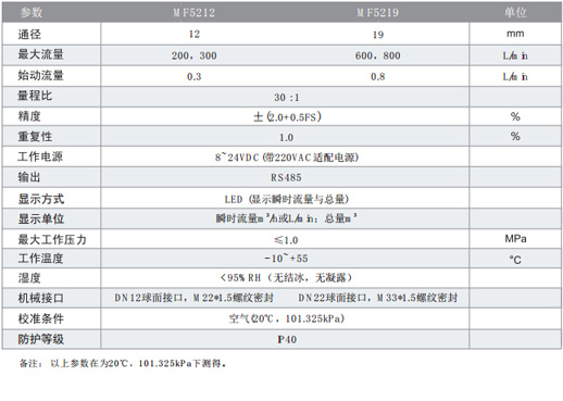 三、MF5200系列氧氣質(zhì)量流量計技術(shù)參數(shù):