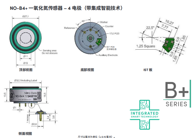 高分辨率一氧化氮傳感器(NO傳感器)NO-B4 NO-B4+ IST板數(shù)據(jù):