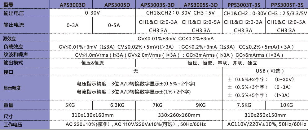 二、三路直流穩(wěn)壓電源APS3003S-3D/3005S-3D技術(shù)參數(shù)