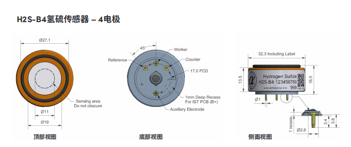 一、硫化氫傳感器(H2S傳感器)H2S-B4 H2S-B4+?產(chǎn)品描述: