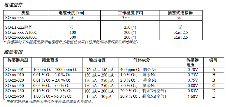 測量范圍:Type SO-E1-010     0,01 – 1,0 vol.% O2