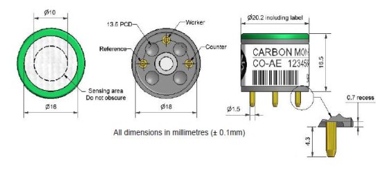 英國alphasense 一氧化碳傳感器 (小型,帶過濾膜,大量程,CO傳感器) - CO-AE