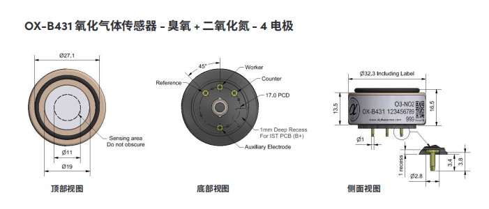 一、英國Alphasense 高分辨率臭氧傳感器(O3傳感器) OX-B431 OX-B431+ 描述