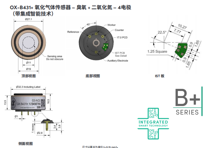 英國Alphasense 高分辨率臭氧傳感器(O3傳感器) OX-B431 OX-B431+ IST板數(shù)據(jù):