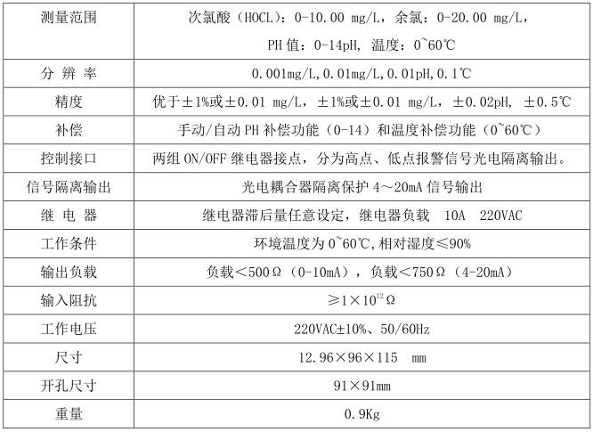 工業(yè)在線余氯儀CL-8100技術(shù)指標(biāo)