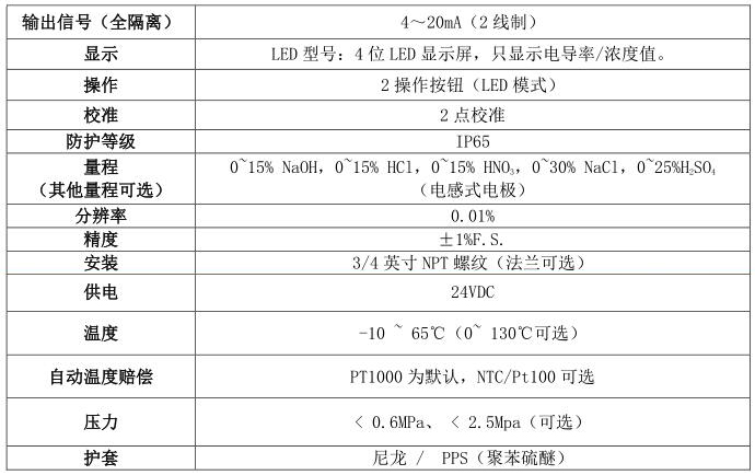 工業(yè)在線酸堿鹽濃度計DDM200C技術(shù)參數(shù)
