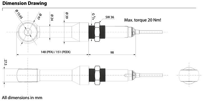 Material | Cell: PFA ; Gasket: FFKM (Chemraz) |