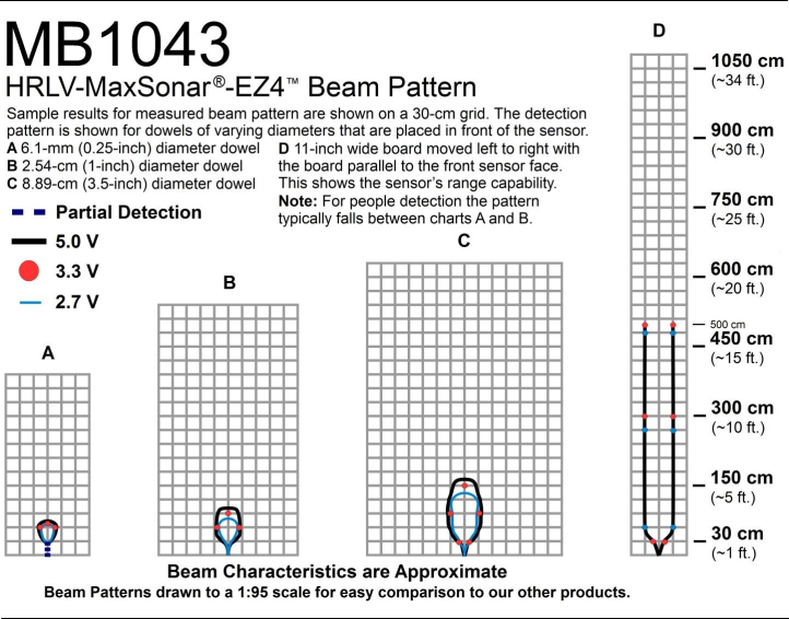 四、超聲波避障傳感器MB1043 MB1033 在HRLV-MaxSonar-EZ系列中的波束角選擇
