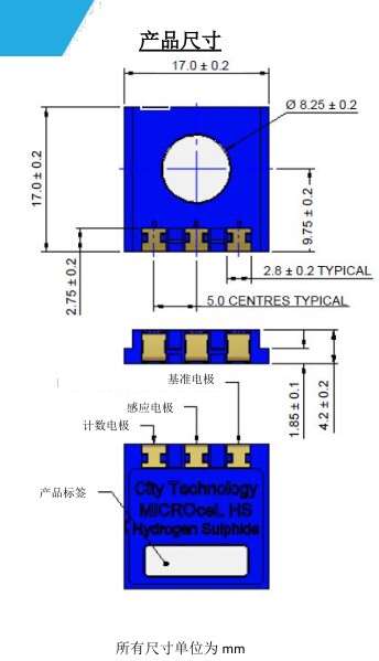 三、硫化氫氣體傳感器 (H2S傳感器)? MICROceL HS 尺寸:?