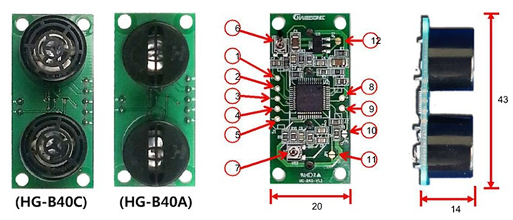 韓國Hagisonic 超聲波傳感器模塊 HG-B40C 端子和零件描述: