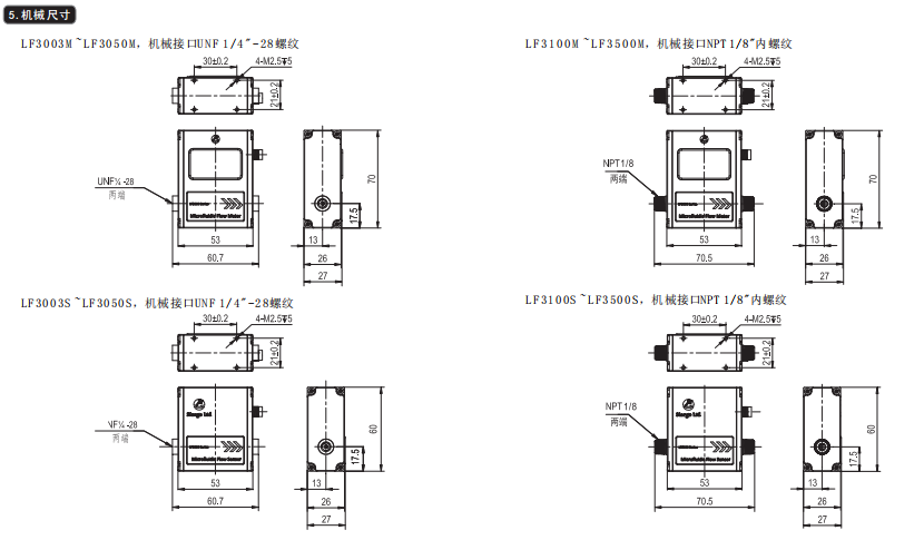 美國(guó)Siargo 微液體流量計(jì) LF3000系列 尺寸: