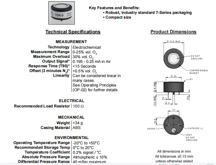 英國(guó)CITY 氧氣傳感器 O2傳感器 7OXV特點(diǎn):