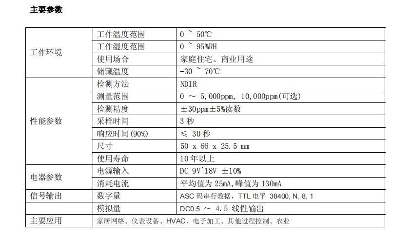 韓國ELT 紅外二氧化碳傳感器 CO2傳感器 B-530 參數(shù):