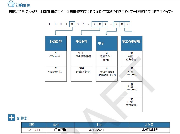 英國SST液位開關 液位傳感器 LLHT系列 選型: