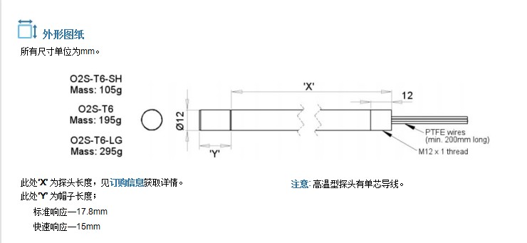 英國SST 氧化鋯傳感器 O2傳感器 探頭系列 長殼體 O2S-系列 參數(shù):
