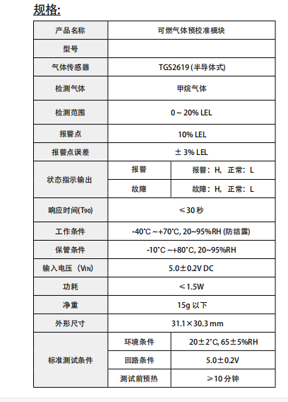 日本FIGARO 可燃?xì)怏w預(yù)校準(zhǔn)模塊 FSM-19T-02 參數(shù):