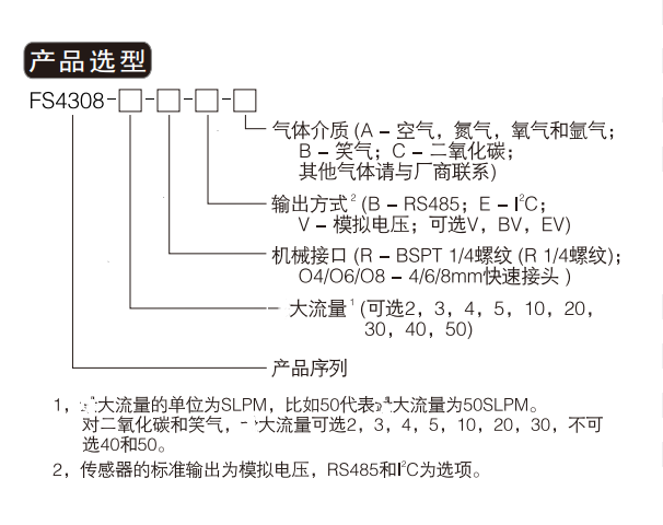 美國(guó)Siargo矽翔 氣體質(zhì)量流量傳感器 FS4300系列 選型: