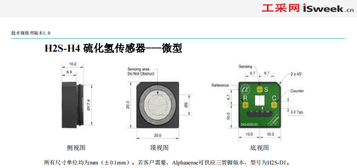 英國Alphasense H2S 硫化氫傳感器 電化學(xué) 微型 - H2S-H4