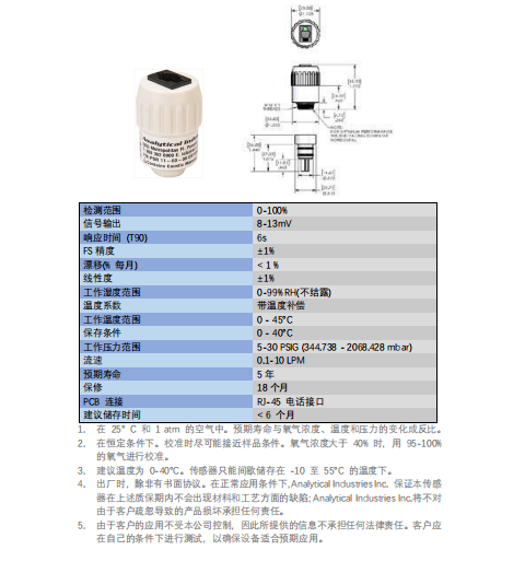 100% 氧氣下的穩(wěn)定性測試。Analytical Industries Inc. 提供的各種氧氣傳感器均為 “美國制造”
