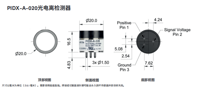 英國(guó)Alphasense VOC 光電離子傳感器 高級(jí)PID傳感器 – PIDX-A-020 尺寸: