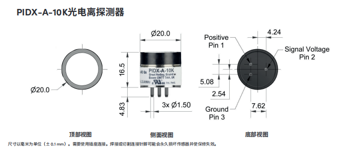 英國(guó)Alphasense VOC 光電離子傳感器 高級(jí)PID傳感器(0-10000ppm)– PIDX-A-10K尺寸: