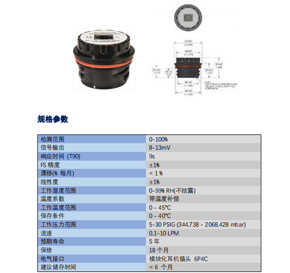 美國(guó)AII O2 氧氣傳感器  PSR-11-915-4  參數(shù):