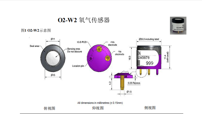英國Alphasense 氣體傳感器 氧氣傳感器 O2 O2-W2描述:
