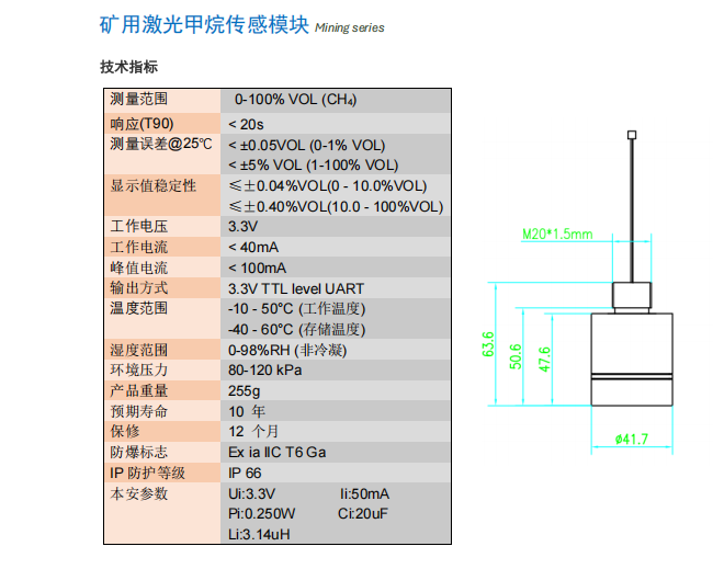 激光甲烷傳感器?AG-6-CH4-28M2 參數(shù):