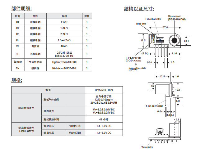 日本Figaro LP氣體預(yù)校準(zhǔn)模塊 LPM2610 - D09 參數(shù):