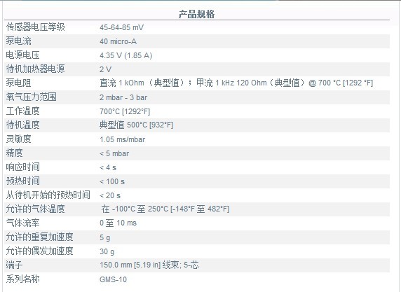 五、高精度氧氣傳感器(O2傳感器)GMS-10 RVS產(chǎn)品規(guī)格:
