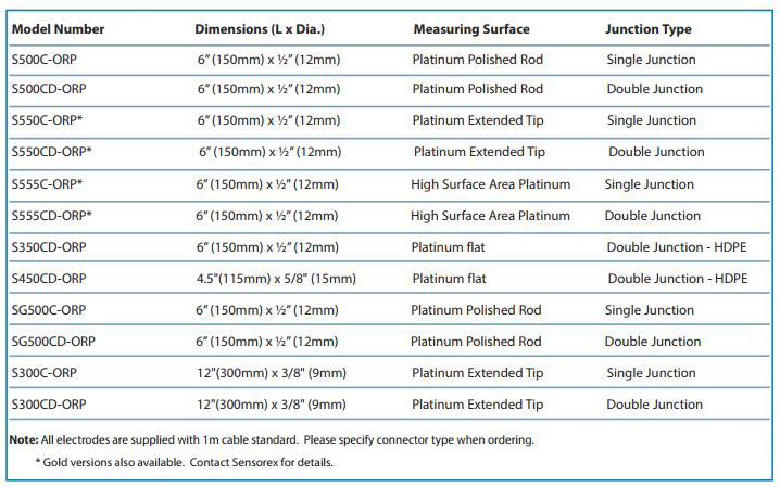 實(shí)驗(yàn)室ORP電極 (水質(zhì)傳感器)訂購(gòu)信息: